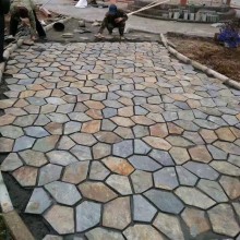 地鋪石小料石冰裂地板亂形板 黃色冰裂紋 碎拼板巖 地鋪石